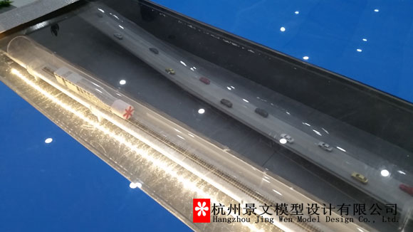 中鐵十四局望江路過江隧道項(xiàng)目展示沙盤最大的亮點(diǎn)來自于盾構(gòu)道內(nèi)微型動態(tài)盾構(gòu)機(jī),參觀者可根據(jù)項(xiàng)目的進(jìn)展情況實(shí)現(xiàn)盾構(gòu)機(jī)前進(jìn)或倒退,更加真實(shí)的模擬了施工現(xiàn)場,由于微縮空間瓶頸關(guān)系,此類切面沙盤通常都會通過動態(tài)燈光的方式概念演示,不能夠真實(shí)還原工作場景。